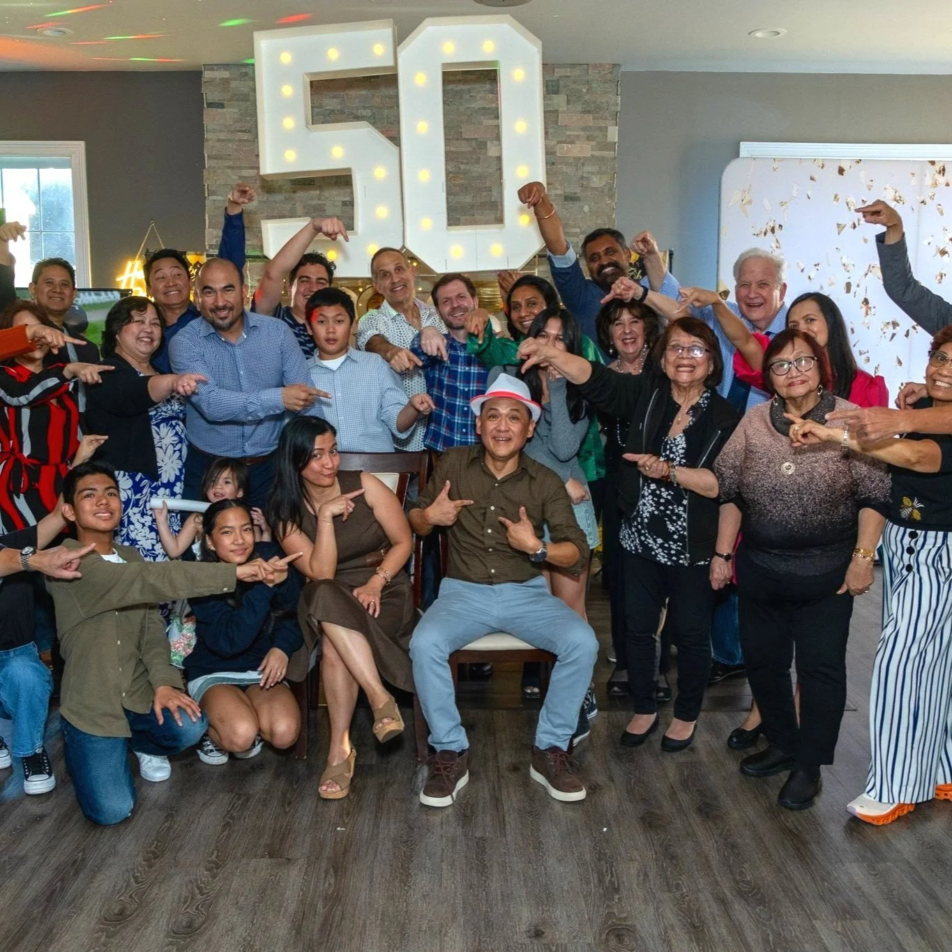Candid and posed group portraits with VIPs and family